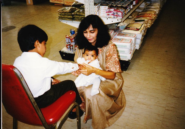 And for those who don’t know me at all, my name is Visha. I’m really glad you stumbled upon my website. Please enjoy this picture of my mom helping me put a rakhi on my brother at my parent’s store circa the late 1990’s. Lots has changed since then, but my very large eyes have not.